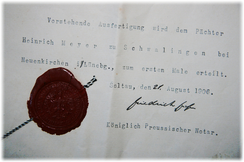 Heinrich Meyers Familie in Schwalingen wächst. Im Februar 1903 wird