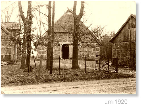 Wirschaftsgebäuden: 1 Wagenremise und 1 Scheune (auf dem Bild 1920